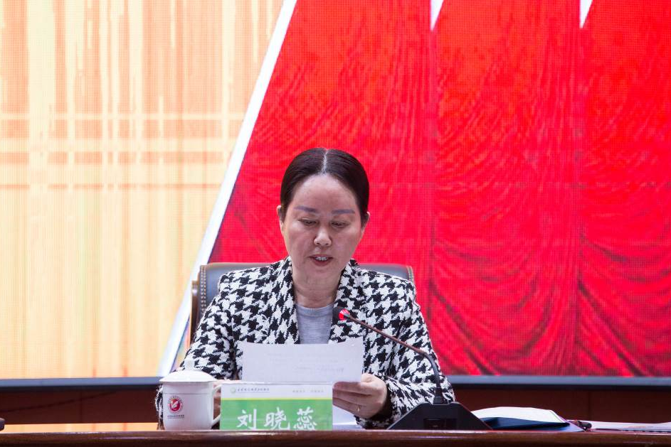 刘晓蕊代表市妇联为大会送上热烈祝贺,她寄语学校妇联组织与全体女性教职工,要坚守妇联组织的政治底色,扛起时代赋予的责任担当,在教育教学、科研服务等岗位上绽放巾帼芳华,书写精彩答卷。